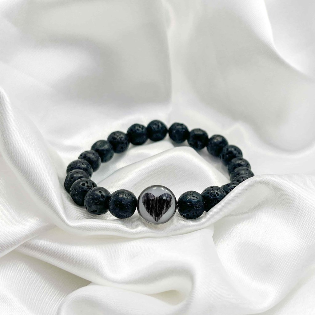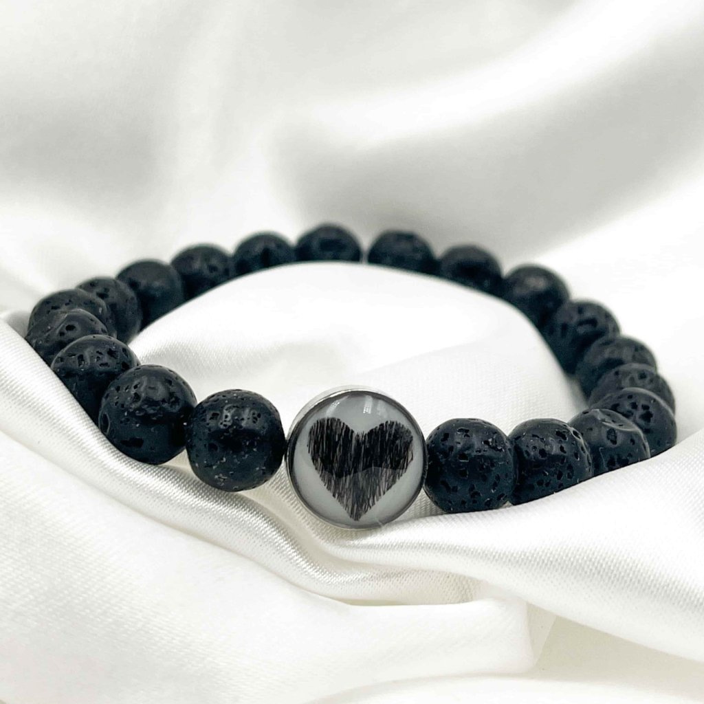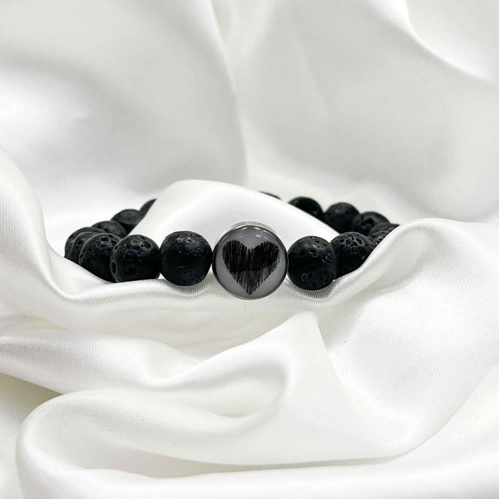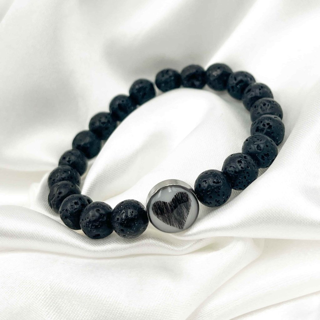 Náramek ze srsti mazlíčka - černá láva Srdce